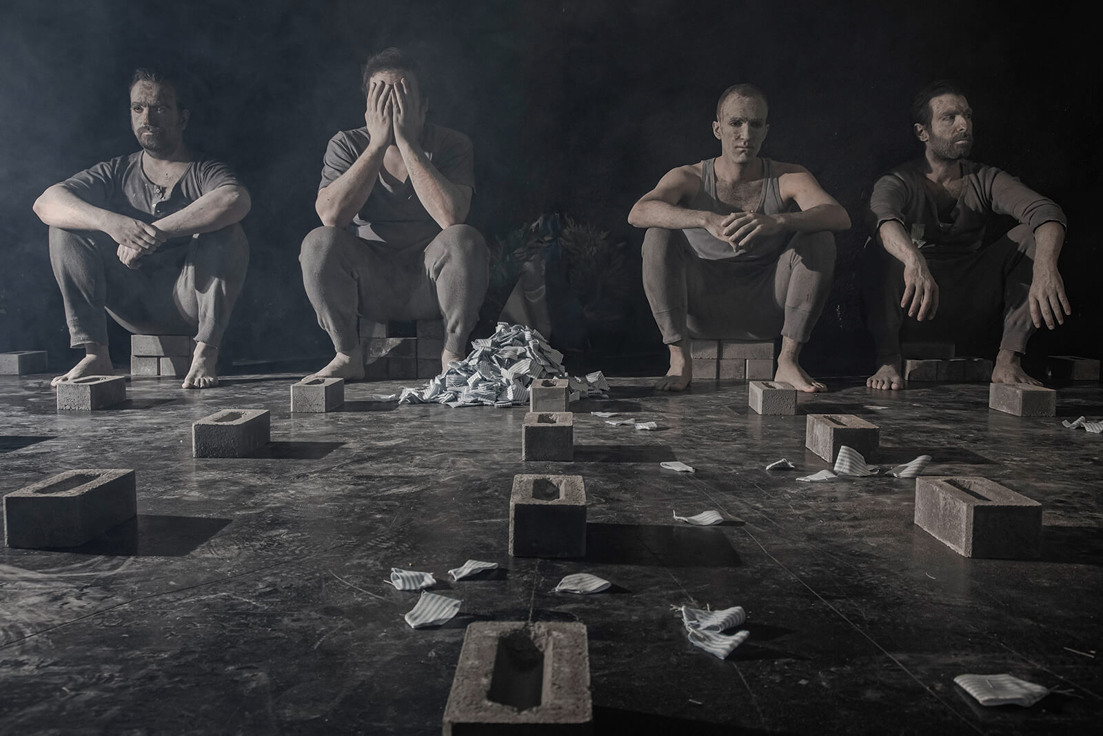 Ο πήλινος κόσμος του ανδρικού λόγου τιμής των διηγημάτων του Δημοσθένη Παπαμάρκου ζωντανεύει στη σκηνή του Θεάτρου Σταθμός και αναμετριέται με τις έννοιες του ηρωισμού, του αρσενικού προσώπου της βίας, αλλά και με την μετατραυματική διάσταση του πολέμου.